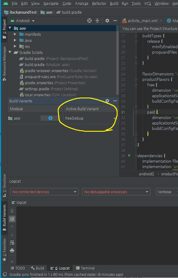 안드로이드 스튜디오에서는 만들어지는 앱에 대해서는 (위에서는 free 버전과 paid 버전 총 2개)
